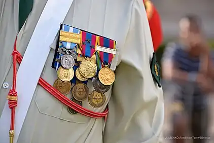 | Fourragères | Aux couleurs du ruban de la Valeur militaire. |
