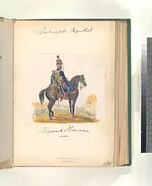 Après 1806, il porte un shako avec un numéro 2 en cuivre à l'avant, surmonté d'une cocarde et d'une plume noire. Le dolman et la culotte sont bleu clair, avec boutons et lacets jaunes. La ceinture est blanche, les guêtres rouges et blanches. Les hussards ont également un dolman blanc à fourrure noire[6].