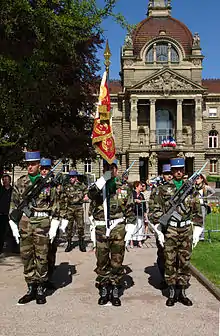 - Décision no 12350/SGA/DPMA/SHD/DAT du 14 septembre 2007 relative aux inscriptions de noms de batailles sur les drapeaux et étendards des corps de troupe de l'Armée de terre, du service de santé des armées et du service des essences des armées, Bulletin officiel des armées, no 27, 9 novembre 2007