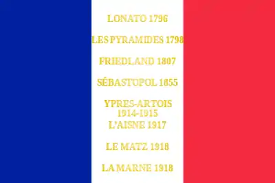 - Décision no 12350/SGA/DPMA/SHD/DAT du 14 septembre 2007 relative aux inscriptions de noms de batailles sur les drapeaux et étendards des corps de troupe de l'armée de terre, du service de santé des armées et du service des essences des armées, Bulletin officiel des armées, no 27, 9 novembre 2007