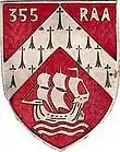 Le premier insigne du régiment est un écu de gueules chargé d'un chevron d'hermine, en chef l'inscription 355 RAA et en pointe un vaisseau à trois mats (issu des armes de Nantes).
