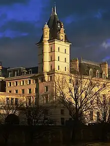 Le bâtiment a été construit entre 1875 et 1880, sur les plans des architectes Émile Jacques Gilbert et son gendre Arthur-Stanislas Diet, à l'emplacement de l'ancien hôtel du premier président de la cour d'appel de Paris, qui fut détruit par l'incendie volontaire survenu lors de la Commune le , et qui détruisit également une bonne part du Palais de justice mitoyen. La préfecture de police de Paris a donc dû quitter son ancien emplacement, et fut installée dans de nouveaux locaux, par Jules Ferry, dans une partie des bâtiments du palais de Justice qui venait d'être reconstruit au 36, quai des Orfèvres[2].