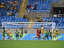 - (fr) « JO 2016 : Suède-Afrique du sud ouvre les Jeux dans un stade quasiment vide », sur sport24.lefigaro.fr,