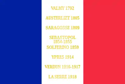 - Décision no 12350/SGA/DPMA/SHD/DAT du 14 septembre 2007 relative aux inscriptions de noms de batailles sur les drapeaux et étendards des corps de troupe de l'armée de terre, du service de santé des armées et du service des essences des armées, Bulletin officiel des armées, no 27, 9 novembre 2007