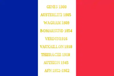 Gênes 1800 Austerlitz 1805 Wagram 1809 Bomarsund 1854 Verdun 1916 Vauxaillon 1918 Thiérache 1918 Authion 1945 AFN 1952-1962 |