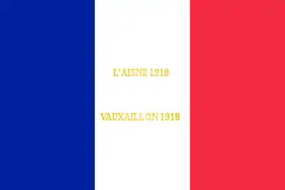 Les noms des batailles s'inscrivent en lettres d'or sur le drapeau[3]:
