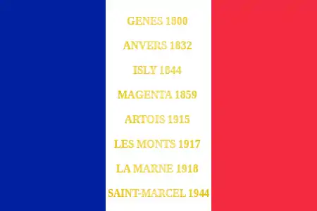 Gênes 1800 Anvers 1832 Isly 1844 Magenta 1859 Artois 1915 Les Monts 1917 la Marne 1918 Saint-Marcel 1944 |