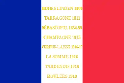Hohenlinden 1800 Tarragone 1811 Sébastopol 1854-1855 Champagne 1915 Verdun-L'Aisne 1916-1917 La Somme 1916 Tardenois 1918 Roulers 1918 |