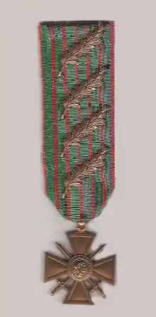 | Décorations | Croix de guerre 1914-1918 quatre palmes |