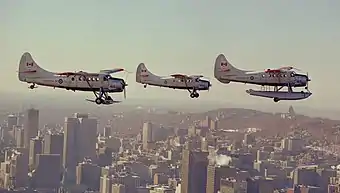 DHC Otters de l'Esc 438 au-dessus de Montréal démontrant les 3 configurations de train (circa 1976). |