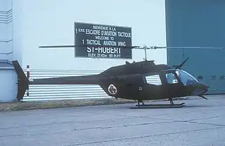 CH-136 Kiowa du 438 en campagne à la BFC Valcartier QC 1992 | CH-136 Kiowa de l'Escadron 438 sur la rampe à St-Hubert 1995 |