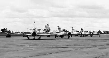 Silver Stars et Sabres de l'Escadron 438 à la station de l'ARC Chatham N.B. en juillet 1957 |