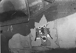 | Walt Disney | Ross Reid DFC | Esquisse de Disney de 1944 | Emblème étant peint sur un Typhoon | Épinglette Wildcat 1945 | Emblème actuel | Emblème sur capot de Griffon pour occasions spéciales |