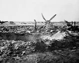 Typhoons canadiens détruits durant l'attaque sur la base de Eindhoven le 1er janvier 1945 |