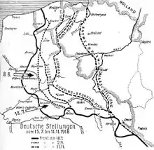 Carte de lignes fortifiées allemandes à l'automne 1918.