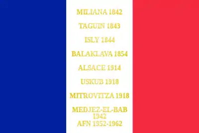 Miliana 1842 Taguin 1843 Isly 1844 Balaklava1854 Alsace 1914 Uskub 1918 Mitrovitza 1918 Medjez-El-Bab 1942 AFN 1952-1962 |