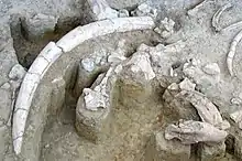 - Entre 450 000 et 420 000 ans AP : sites acheuléens de Torralba et Ambrona (es), dans la province de Soria (Espagne)[11]. Dans un cadre de marais, de bois de pins et de clairières herbacées, à plus 1 200 m d’altitude, ont été découverts des restes d’éléphants antiques, d’équidés, de cervidés, de bovidés et de rhinocéros. Le pourcentage élevé d’éléphants jeunes, plus vulnérables, et la présence de fragments de bois évoquant des épieux ont longtemps été considérés comme des indices de chasse organisée. Le marais aurait servi de fosse-piège. Cette hypothèse est aujourd'hui contestée.