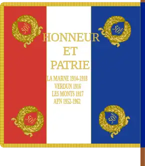 - « Décision no 12350/SGA/DMPA/SHD/DAT relative aux inscriptions de noms de batailles sur les drapeaux et étendards des corps de troupe de l'armée de terre, du service de santé des armées et du service des essences des armées », Bulletin officiel des armées, no 27, , p. 94 (lire en ligne)
