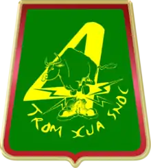 Écu de fantaisie d'azur bordé de gueules (bordeaux) à une carte d'Italie de candide, chargée d'un poteau et de fils électriques d'or, brochés d'un tau stylisé de turquin chargé d'un éclair et du nombre 53 d'argent accompagné de l'insigne de la 3e DIA et des nombres 83/84 en chiffres du second métal.