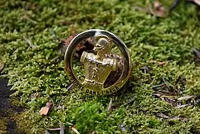 Le tau bleu (symbole des Transmissions) en relief, est chargé sur la barre horizontale de l'étincelle et du chiffre 53 pour montrer qu'il s'agit de l'insigne du 53e RT.