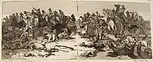 Cavalerie allemande sous le feu des mitrailleuses russes, dessin anonyme, Biélorussie, 1916.