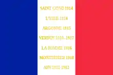 Il porte, cousues en lettres d'or dans ses plis, sept noms de batailles[1],[2] :