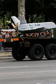 Vue arrière d'un drone SDTI lors du défilé militaire du 14 Juillet.
