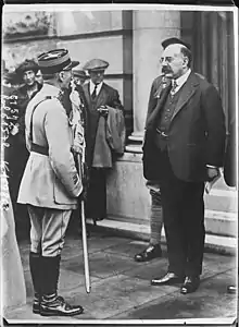 Le colonel Marie (gauche, de profil) à Londres en 1920.