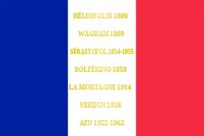 2. Décision no 12350/SGA/DPMA/SHD/DAT du 14 septembre 2007 relative aux inscriptions de noms de batailles sur les drapeaux et étendards des corps de troupe de l'armée de terre, du service de santé des armées et du service des essences des armées, Bulletin officiel des armées, no 27, 9 novembre 2007