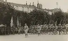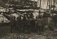 Le général Blondin et l'état-major divisionnaire aux Islettes en avril 1917. | |