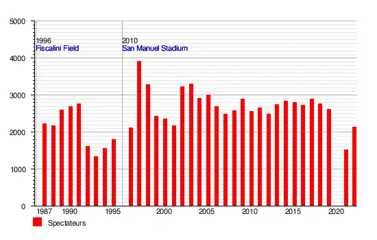 - 1996- : San Manuel Stadium (anciennement appelé San Bernardino Stadium) à San Bernardino, Californie (8 000 places).
