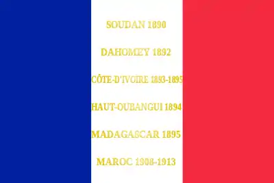 Soudan 1890 Dahomey 1892 Côte-d'Ivoire 1893-1895 Haut-Oubangui 1894 Madagascar 1895 Maroc 1908-1913 |