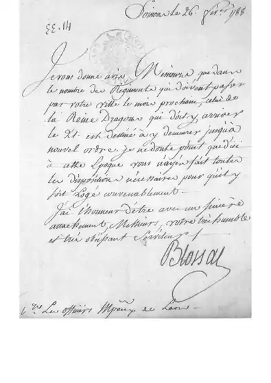 - 1792 : colonel Marc Pierre de la Turmeliere