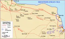 En , les forces italo-allemandes lancent l'opération Sonnenblume en Cyrénaïque, forçant les troupes alliées à se replier dans le courant des mois de mars et d'avril. Richard O'Connor, désormais général en chef des troupes en Égypte, est capturé. La 9e division d'infanterie australienne se replie sur la forteresse portuaire de Tobrouk. Le reste des troupes britanniques et du Commonwealth se retirent à 160 kilomètres vers l'est, sur Sollum et la frontière égypto-libyenne[14].