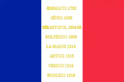 Jemappes 1792 Gênes 1800 Sébastopol 1854-55 Solférino 1859 La Marne 1914 Artois 1915 Verdun 1916 Roulers 1918 |