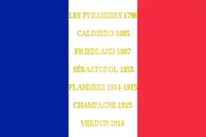 Les Pyramides 1798 Caldiero 1805 Friedland 1807 Sébastopol 1855 Flandres 1914-1915 Champagne 1915 Verdun 1916 |