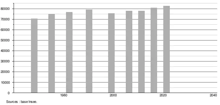 - Population municipale légale en vigueur au 1er janvier 2024, millésimée 2021, définie dans les limites territoriales en vigueur au 1er janvier 2023, date de référence statistique : 1er janvier 2021.