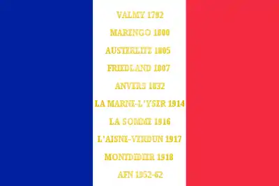Valmy 1792 Marengo 1800 Austerlitz 1805 Friedland 1807 Anvers 1832 La Marne-L'Yser 1914 La Somme 1916 L'Aisne-Verdun 1917 Montdidier 1918 AFN 1952-1962 |