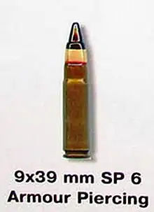 - La cartouche SP-6, à noyau d'acier durci, perforante.
