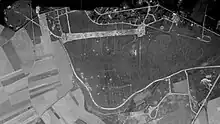 Vue aérienne de l'aérodrome et de l'hippodrome des Bruyères. | |||||||||||||