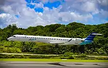 Bombardier CRJ1000 de Garuda Indonesia atterrissant sur l'aéroport de l'île Christmas