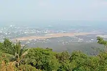 Vue de la piste de l'aéroport et de la partie méridionale de la ville