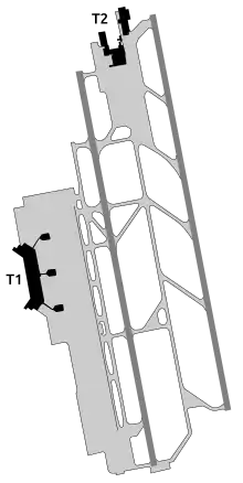 L’aéroport est constitué de deux terminaux distincts : le Terminal 1 pour tous les vols intercontinentaux, internationaux et nationaux, alors que le Terminal 2 est réservé exclusivement aux vols charter et aux compagnies aériennes à bas prix.