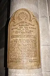 Une plaque a été scellée dans la partie sud de l'abbatiale pour rappeler celui-ci. Il existe également une inscription en latin, gravée sur une dalle dans la Chapelle de la Vierge.