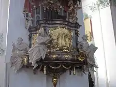 La décoration intérieure et extérieure a été commandé à l'artiste Johann Christian Wentzinger pour 52 000 florins ; il n'a cependant pas personnellement beaucoup travaillé sur le bâtiment, mais s'est contenté de concevoir et planifier la réalisation. Les travaux sur la nef ont été terminés à l'été 1760, et l'église a été consacrée le . Le chœur, pour sa part, ne sera construit qu'en 1760. Jusqu'alors, c'est l'ancien chœur gothique qui servait d'église temporaire. Les deux flèches ont été terminées en 1766, alors que les derniers travaux d'intérieur ont duré jusqu'en 1772. Le dôme de la nef mal exécuté oblige à des premiers travaux de rénovation dès 1773.