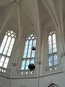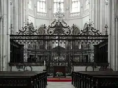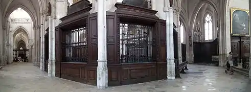 Les chapelles rayonnantes ont toutes reçu la même décoration : boiseries de chêne sculptées laissant place à un tableau et une grille de fer forgé.