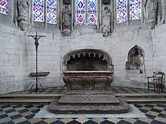 - Cette dalle est plus ancienne que l'autel lui-même et serait d'époque médiévale.