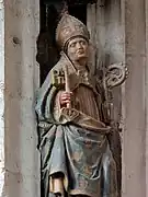 Cinq statues en pierre polychrome reposant sur des culs de lampe formés chacun d’un angelot, sont abritées par un dais flamboyant. Ce sont des exemples remarquables de la sculpture picarde du début du XVIe siècle. Elles proviennent de l'ancienne église paroissiale Notre-Dame abandonnée après la Révolution au profit de l'abbatiale sauvée de la vente en tant que bien national par son nouveau statut d'église paroissiale. On reconnaît, sainte Véronique, sainte Hélène, saint Benoît, saint Vigor et saint Riquier[12]. Un tableau représentant Saint Angilbert recevant l’habit religieux de Symphorien, abbé de Saint-Riquier est de Bon Boullongne et date de 1690.