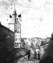 Dans les années 1650, pour mieux se protéger, l'abbaye se dote « d'un pavillon de guet sur les vignes, en Haute-Chevaufosse » (le haut de l'actuelle rue Monulphe). Sur une peinture anonyme datée de 1832, on peut voir au sommet de la tour, flotter les couleurs belges et françaises, probablement à l'occasion du mariage entre le premier roi des Belges, Léopold et Louise-Marie, fille de Louis-Philippe, roi des Français.