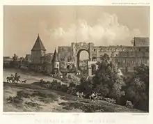 L'abbaye dévastée au cours de la Guerre de Cent ans